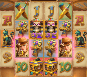 当3个夺宝符号出现在丽影奇兵之探秘埃及卷轴的任意位置时,免费旋转模式将被触发并获得10次免费旋转。